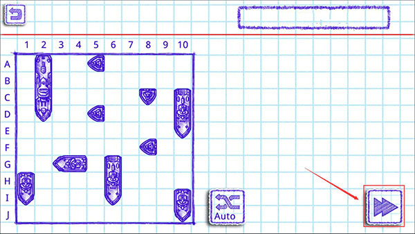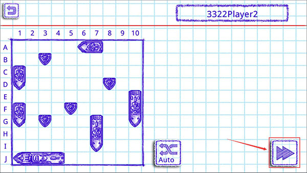 3、然后就进入到了一号玩家的布阵阶段,这里的话,点击【Auto】按钮可以一键随机布阵,布阵完成后点击右下角的【下一步】图标。