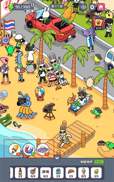 1、进入寻物模式关卡后,根据任务栏中的物件在场景中进行寻找隐藏物品。