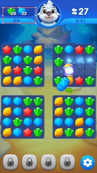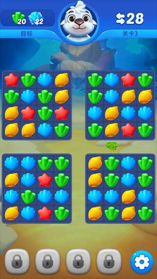 1. 经典三消搭配水族箱装饰,点击匹配同色图块,简单有趣超易上手。