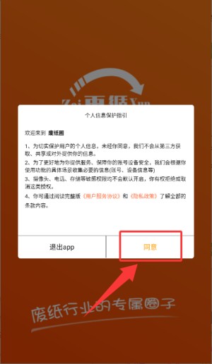 1.点个人信息保护指引窗口的“同意”,进废纸圈。