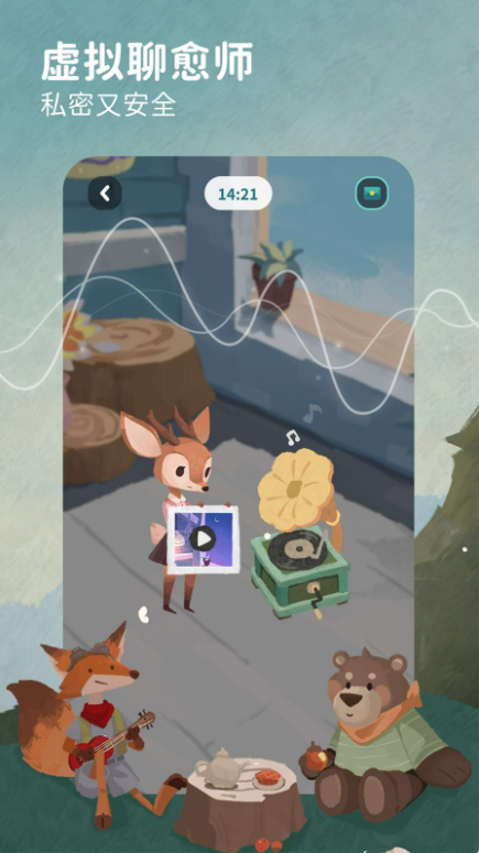 1.AI对话陪伴:通过动物疗愈师进行文字/语音交流,提供情绪反馈与正向引导。