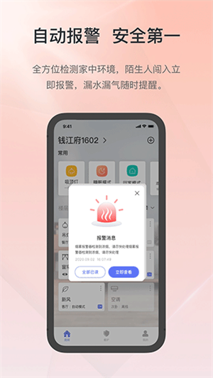 4.家庭共享与安防:支持家人设备权限共享,集成门窗传感器、摄像头实现实时安防警报。