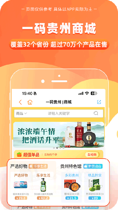 用户可通过APP购买贵州特产、全国好物,享受优惠补贴与极速配送。