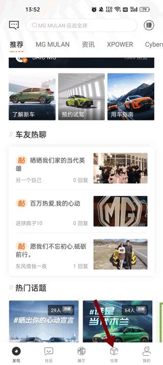 2.在 MG Live 首页,点击进入“悦享”页面。
