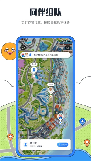 2.智慧导览服务:精美手绘地图标注景点、表演、餐饮、住宿位置,支持语音讲解与实时导航。