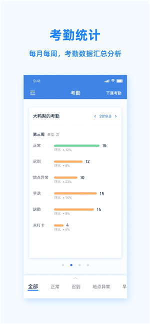 3.移动考勤与排班管理:基于地理位置的定位打卡,实时统计考勤数据并生成异常预警。