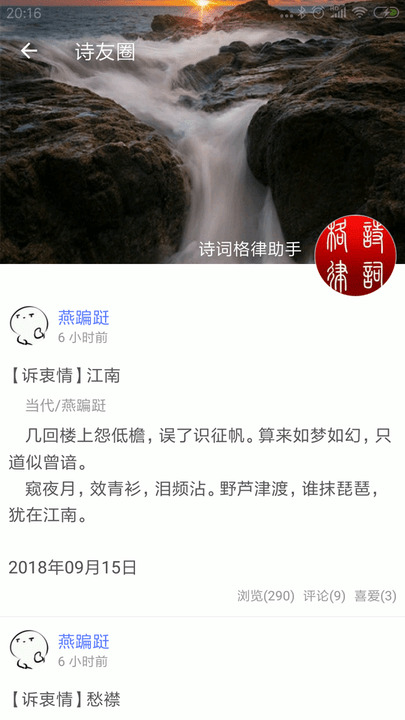 用户可在诗友圈发布作品,接受他人点评,结识志同道合者,形成以诗会友的社交网络。