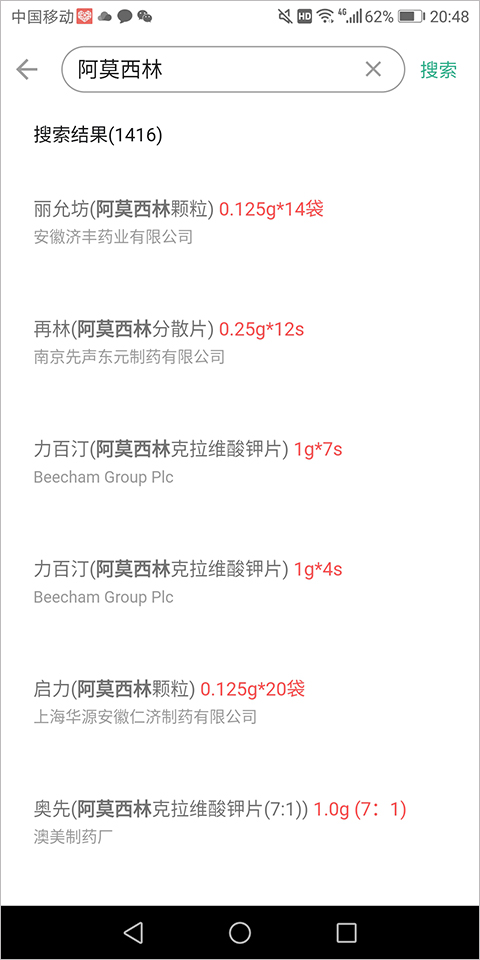 1.进入【药品大全】页面,在搜索框搜要查看成分的药品种类名称。