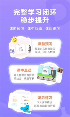 1.趣味教学体系:结合动画、游戏、剧情故事等元素,打造沉浸式学习场景,让孩子在玩中学,培养英语兴趣与能力。