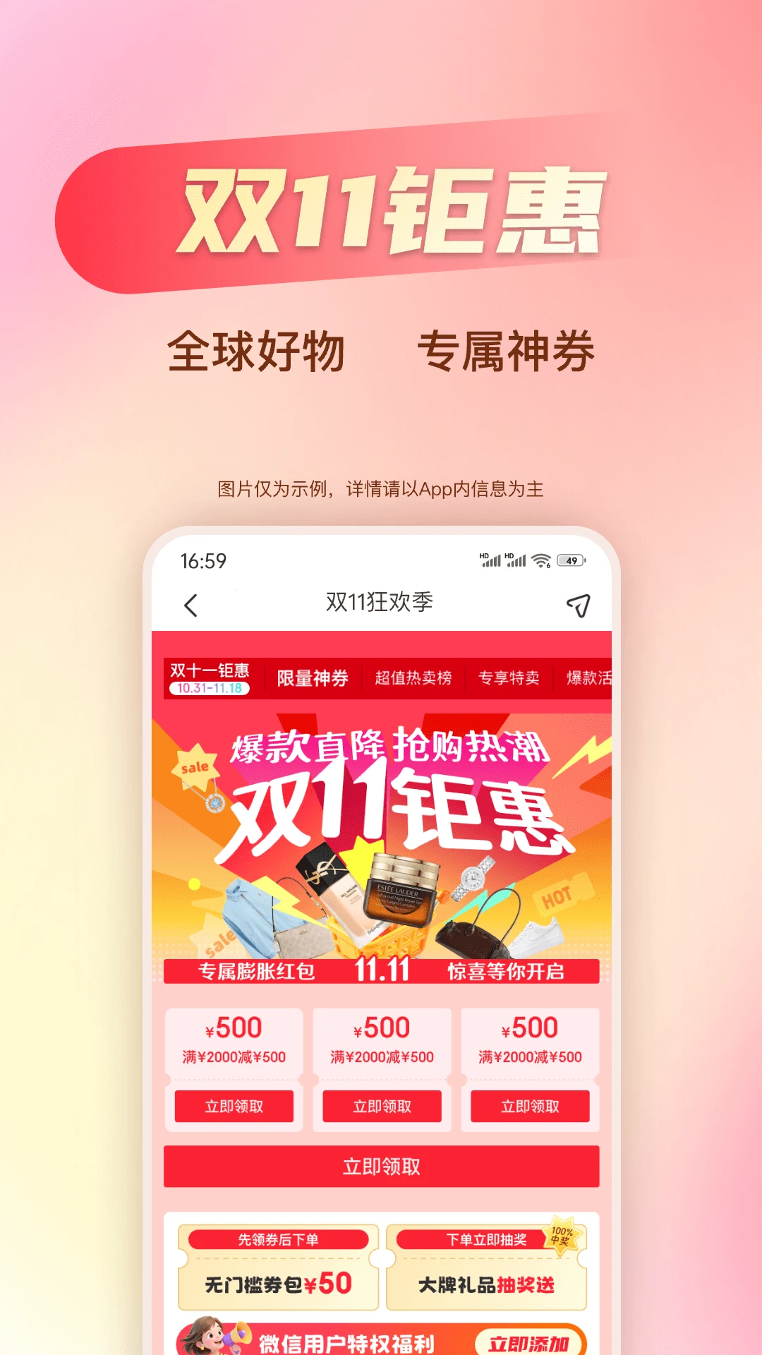 用户可轻松购买到雅诗兰黛、兰蔻、SK-II等国际大牌美妆产品,享受与海外官网同步的价格和优惠。