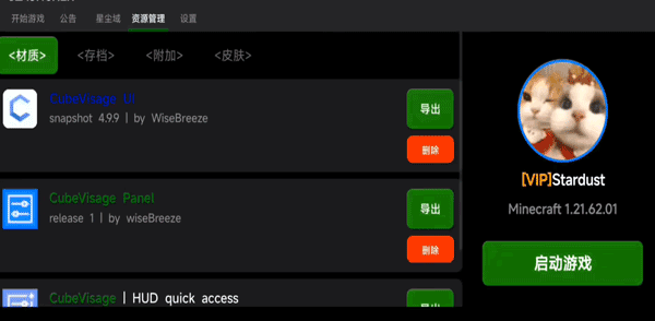 2.资源中心:内置百万级材质包、模组及皮肤库,支持一键导入