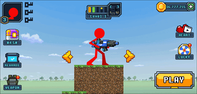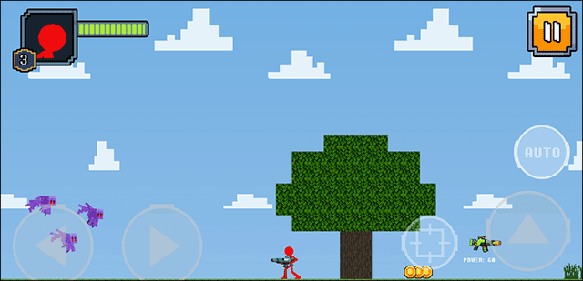 1. 操控火柴人角色,选不同武器,通过攻击、防御和躲避取胜。