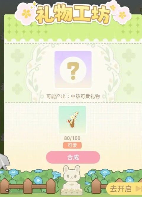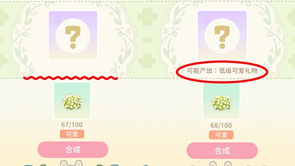 合成礼物不需要100株作物,只需要出现“可能产出:低级可爱礼物”字样即可