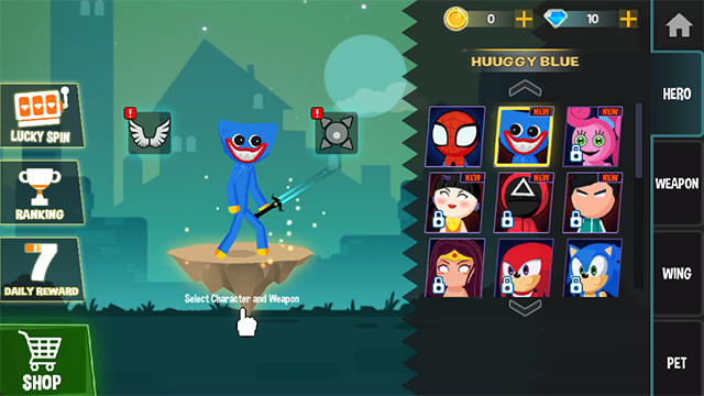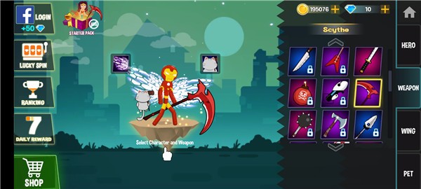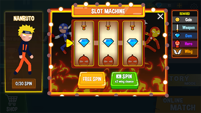 2、选择你的火柴人角色,钢铁侠、鸣人、路飞等等应有尽有;