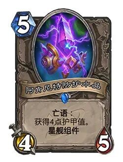 旧:嘲讽。亡语:获得4点护甲值。星舰组件。