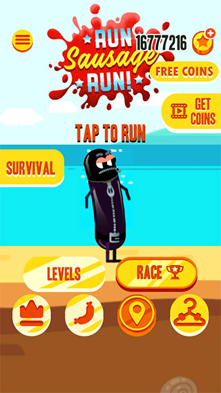 1. 操控香肠向前奔跑,点击屏幕弯腰躲避障碍,同时获得加速效果。
