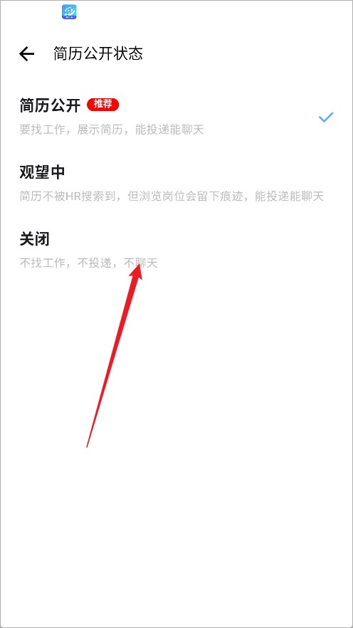 3.在设置页选【简历状态】。