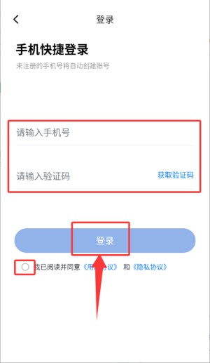 2.接着输入手机号、验证码并勾选协议后点击登录完成验证