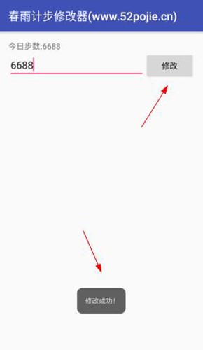 用户可输入任意数字修改春雨计步器记录的步数,支持一键同步至QQ健康、微信运动等平台,实现数据无缝对接。