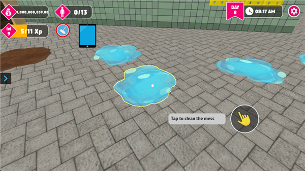 1、刚进入游戏玩家需要移动到场景中点击清理脏乱的地面。