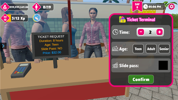 3. 雇佣强大团队,清理杂物、管理事务,助力水上乐园帝国发展。