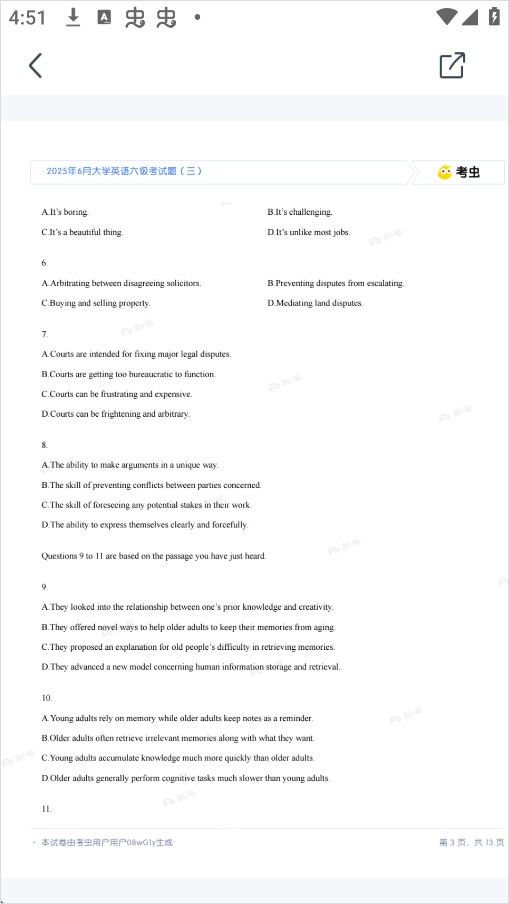 5.最后按顺序或随机做题,耐心专注,坚持刷题提升六级成绩。