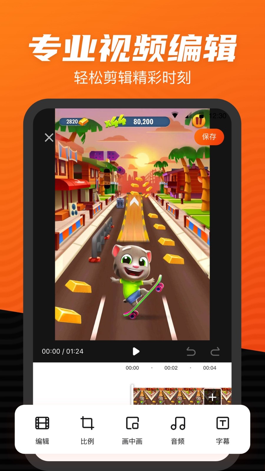 4.保存编辑:录完视频自动存APP视频库,可在APP剪辑、加字幕、配音。