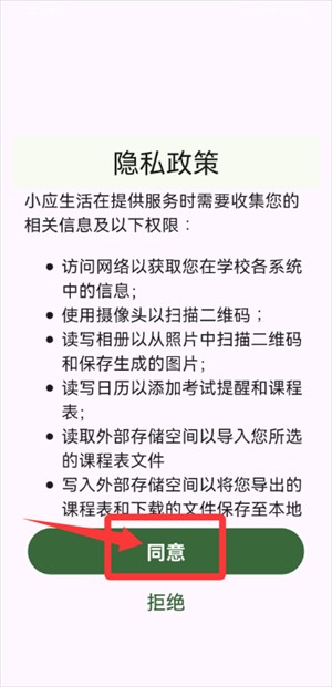 1.打开 app,看完隐私政策点同意。