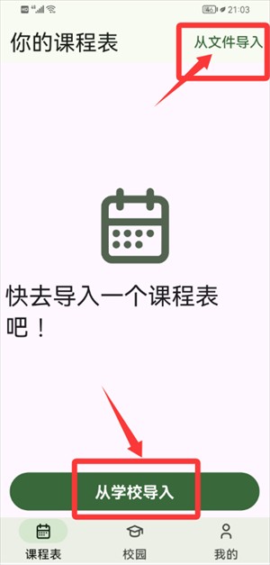 3.到课程表界面,选从学校导入或文件导入课表。