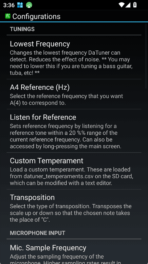 允许用户创建自定义乐器,通过编辑XML文件来指定任意多个单独的频率,满足特殊乐器的调音需求。这一功能对于拥有独特乐器或需要进行特殊调音的用户来说尤为实用。