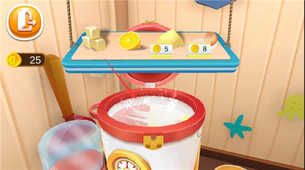 2. 依据提示选配料,榨汁研磨后与糖浆混合丰富糖果口味。