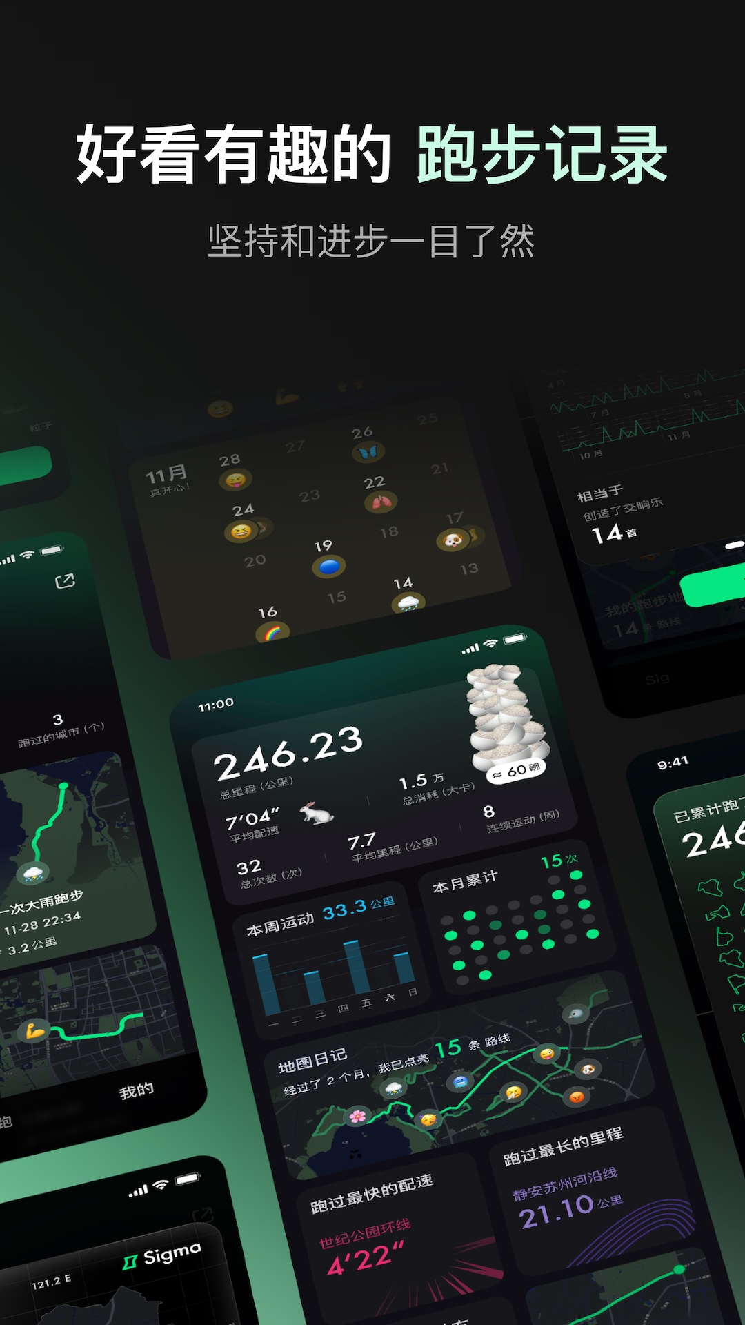 3.点亮心情的地图日记:跑过的每一座城市、每一段路程,都承载着独特的回忆。Sigma跑步App的地图日记功能将这些珍贵的回忆巧妙地收藏在一张地图里,用户可以清晰看到自己在不同城市留下的跑步轨迹,每一段轨迹都可能关联着当时的心情、沿途的风景和难忘的故事。