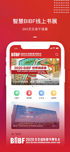 4.智慧书展体验:作为365天全年无休的线上展示平台,BIBF云书展App让用户随时都能体验到丰富多彩的文化活动。无论是线上展览、活动直播还是版权求购,用户都能在这里找到满足自己需求的内容。