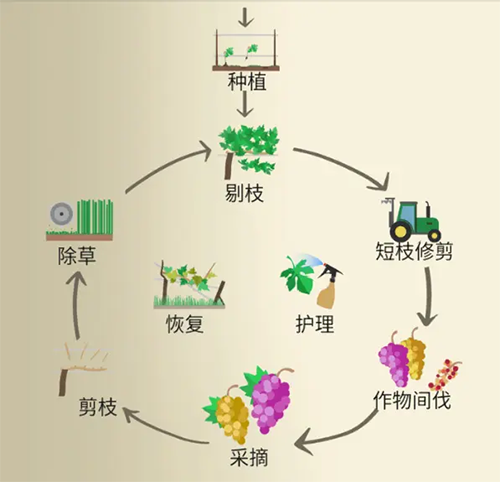 5)作物间伐:去除葡萄藤上的花和/簇,可以人为使藤本植物改变平衡。(必要)