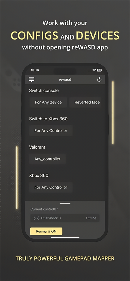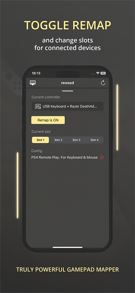 一款配套应用程序,可让您在移动设备上管理 pc 上的配置。这样,您无需在游戏中按 alt+tab 来检查配置中的映射,而且您只需在移动设备上轻按几下即可轻松应用配置。此外,rewasd junior 在打开时会收到其在 pc 上的哥哥的通知,因此如果电池电量不足或切换到另一个插槽或班次,您会收到通知。