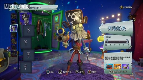死须船长应该是僵尸方的一个混合型的角色。他们的主要武器在近战时可以用作霰弹枪,而在远程时却可以当做狙击步枪。而他的能力则是可以使用中远距离的大炮,遥控在空中攻击和轰炸的鹦鹉,以及点燃火药桶对近距离造成伤害。