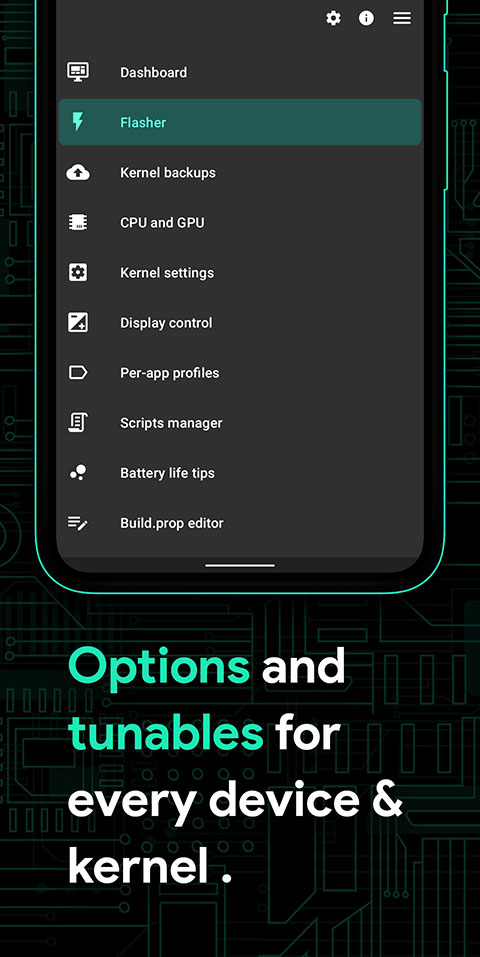1.深度兼容Franco Kernel:自动检查新版本并支持一键刷入,无需访问恢复模式。