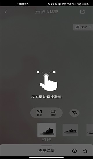 3、开虚拟试穿功能以后,向左滑动列表,选择一双试穿鞋;