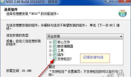 3、选择NSIS安装组件,您可以自行选择,选择完成后点击【下一步】继续安装。