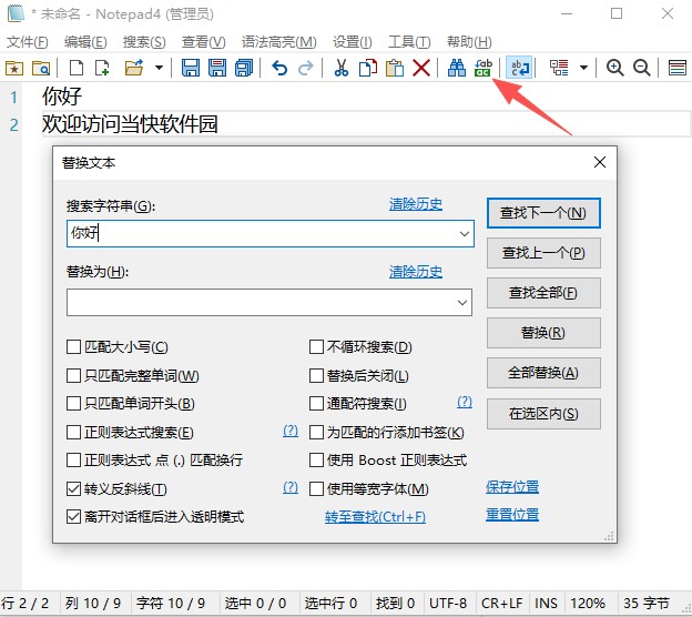 2、点击替换可以替换文本中的文字