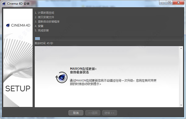 11、至此,Maxon Cinema 4d R19免费版安装就全部完成了,但是需要注意的是本次提供的版本功能虽然齐全,但是并不包含预设项,需要使用的朋友可以打开更新在线下载。