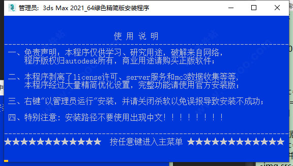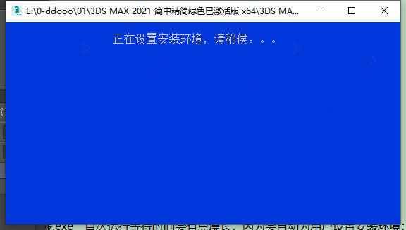 3、双击“3ds Max2021安装。exe”按下回车,首次运行等待时间会有点漫长,因为会自动为用户设置安装环境;