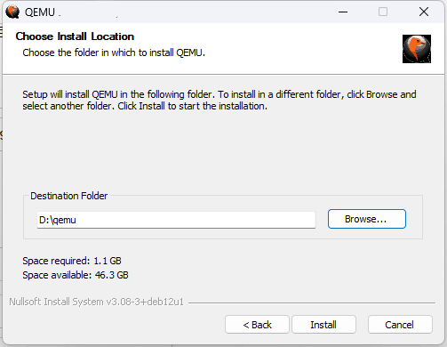 >D: 进入D盘,即你安装Qemu的路径,刚刚记下来的路径