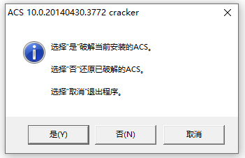 注意说明:激活程序针对ACS 10.0.20140430.3772版本制作,支持XP及以上操作系统(32位、64位不限)。