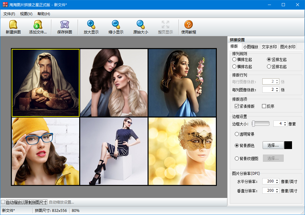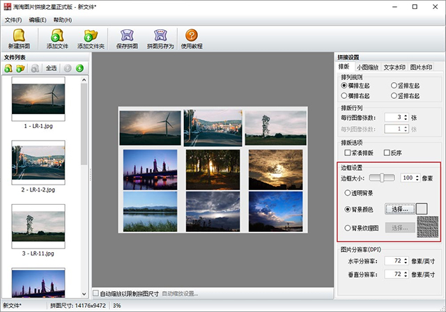 用户可灵活设定拼图的行列布局,涵盖单行、单列及多行多列模式。支持多种图片排列方式,如横排从左或从右起始、竖排从左或从右起始等。能自定义边框像素大小与背景颜色,还可按需调整图片分辨率,包括水平与垂直分辨率。