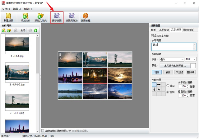 支持在合成拼图上添加横向或纵向文字水印,也能为拼图文件添加图片水印,并可微调水印位置,设置水平和垂直相对偏移。新增自动缩放拼接图片尺寸功能。