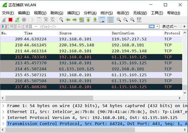 1. 拥有强显示过滤器语言,可查看 TCP 会话重构流。