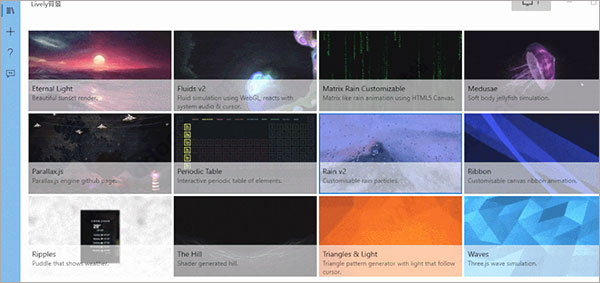lively动态壁纸桌面软件是可以免费使用的电脑动态壁纸软件,内置了10个动态壁纸可以使用,直接导入本地存储或网络,轻松设置为桌面背景,支持网页、图片、视频、gif各种类型,提高原生分辨率,让你的画面质感绝佳,对配置要求没那么高,可以在桌面看动态壁纸了。