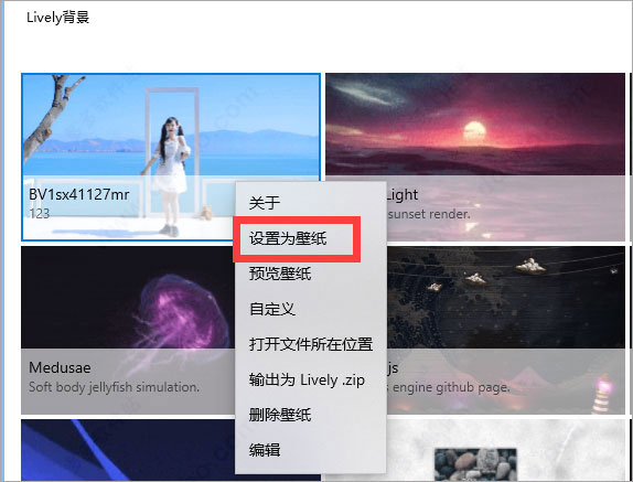 然后就能软件中看到 B 站小姐姐跳舞视频的动态壁纸了,同意右键设置为壁纸;