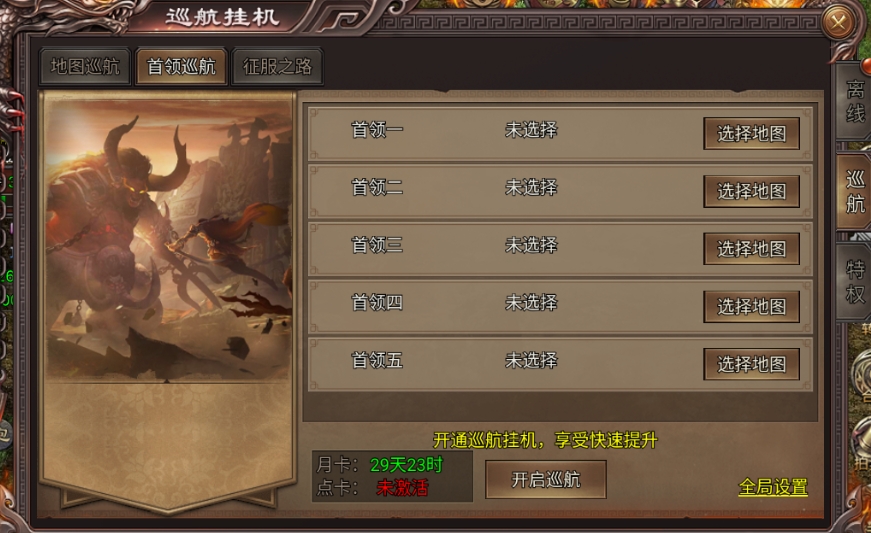 虎卫战神里战力提升是永恒追求!装备、任务、升阶、炼体等途径虽多,却都绕不开打BOSS攒材料。频繁切换地图、升级缓慢是否让你抓狂?别愁!2025年必看的AI巡航玩法指南来啦,开通巡航挂机,轻松告别繁琐,快速提升战力,开启畅爽游戏新体验!